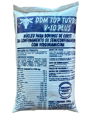 Misturar 45 kg do produto em uma tonelada de concentrado ou ração destinado a alimentação